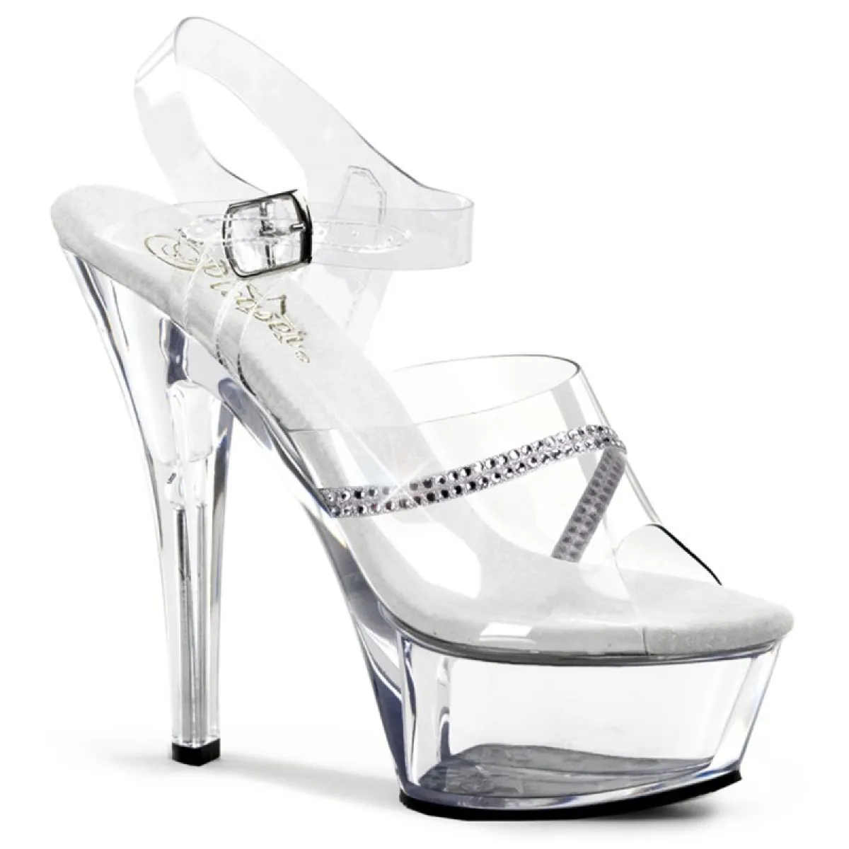KISS208R/C/M jsou průhledné sexy sandály na vysokém podpatku a platformě z nabídky výrobce Pleaser. Ideální pro tanečnice do nočních klubů.